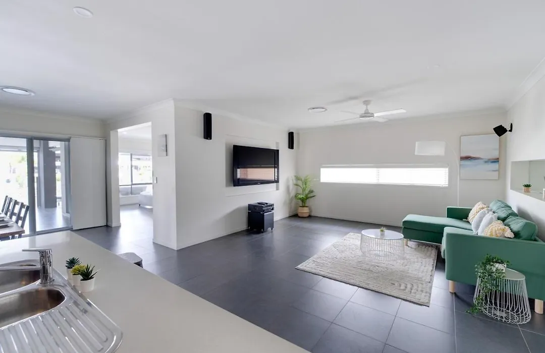 L'appartement 5Br Oasis W Riverviews,Private Pool, Patio, Deck Gold Coast est situé à moins de 25 minutes à pied du Parc d'attractions Dreamworld et à 2 km du Parc aquatique WhiteWater World. Le Wi-Fi est disponible pour les besoins professionnels ou de loisirs des clients.